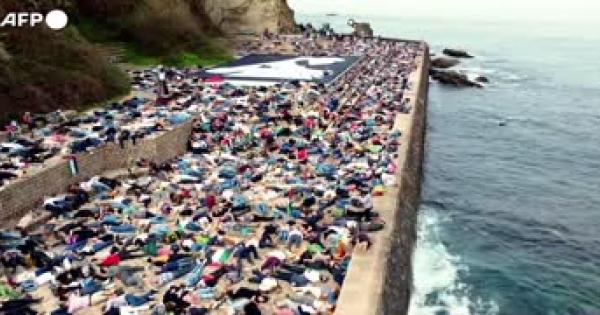 "Stop genocidio" con centinaia di persone in riva al mare nella citta' basca di San Sebastian