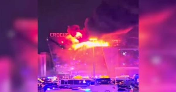 Le fiamme nella Crocus City Hall forse a seguito del lancio di granate