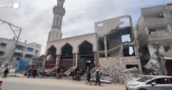Palestinesi pregano nella struttura rasa al suolo da un attacco israeliano
