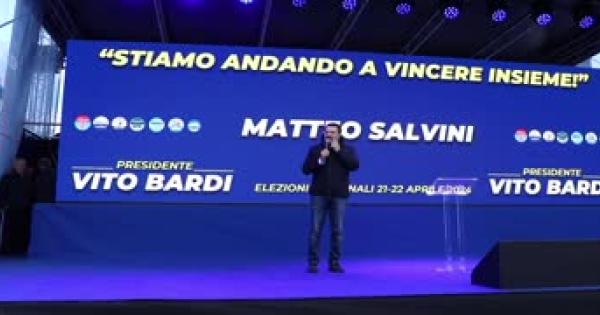 Il leader della Lega al comizio di chiusura della campagna elettorale per le Regionali
