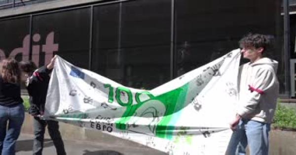 Banca accusata di complicita' con le lobby del fossile. Volantini incollati sulla facciata