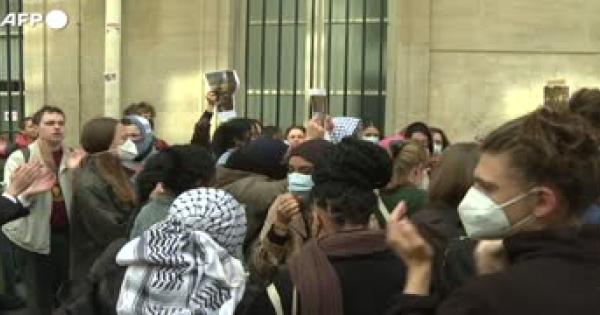 Studenti bloccano l'ingresso principale dell'edificio