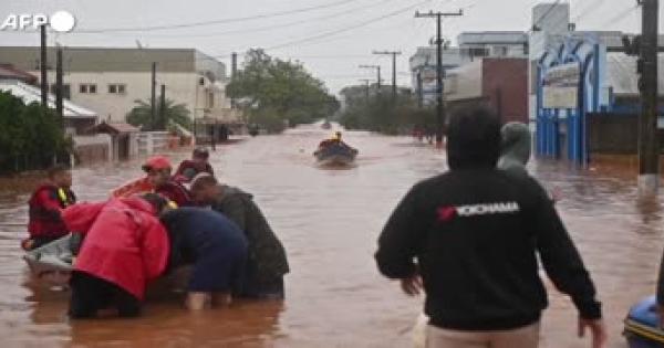 I soccorritori al lavoro nelle strade diventate come fiumi