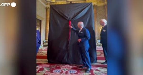 Il dipinto di Jonathan Yeo svelato ieri a Buckingham Palace alla presenza del sovrano
