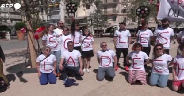 Gli slogan: "Sotto gli schermi, gli scarti". "Senza di noi, niente Festival"