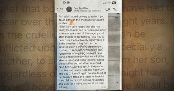 (ANSA) - TRENTO, 25 MAG - "Sono davvero molto felice che sia finalmente riuscita a rivedere suo figlio dopo tutti questi anni e dopo le tragedie e il lutto con cui entrambe le nostre famiglie hanno dovuto fare i conti negli ultimi 26 anni. La cosa più crudele che si possa infliggere a una persona, specialmente se è madre, è separarla dal proprio figlio, indipendentemente dalle sue azioni". Lo scrive Bradley Pike in una lettera inviata alla madre di Enrico Chico Forti, il 65enne trentino condannato all'ergastolo negli Usa per l'omicidio del fratello di Bradley, Dale. La lettera di Bradley Pike, diffusa da 'Quarto Grado', è stata consegnata alla madre di Forti, Maria Loner, giovedì 23 maggio, il giorno dopo l'incontro tra la donna e il figlio grazie al permesso di 4 ore concesso all'ergastolano dopo il suo rientro in Italia. "Mi auguro di poterci ritrovare e piangere insieme le vite sprecate/perdute - scrive ancora il fratello di Dale Pike - pensando a quello che avrebbero potuto essere se tutta questa storia non fosse avvenuta". "Si rassereni ora e si goda la prossimità di Chico - conclude Pike - sperando che un giorno riusciate a sedervi a tavola insieme a tutti i vostri cari e guardare negli occhi i vostri figli, lavorando e pregando affinché possano vivere in un mondo più giusto". Nell'agosto del 2020 Bradley Pike, tramite la trasmissione 'Le Iene', aveva scritto al governatore della Florida per chiedere "l'immediato rilascio di Enrico Forti". "Sono fermamente convinto - affermò - che il signor Forti sia innocente del crimine per il quale è stato ingiustamente detenuto per 20 anni". (ANSA).