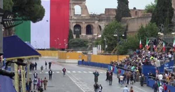 La bandiera italiana e' visibile su tutti i Fori Imperiali