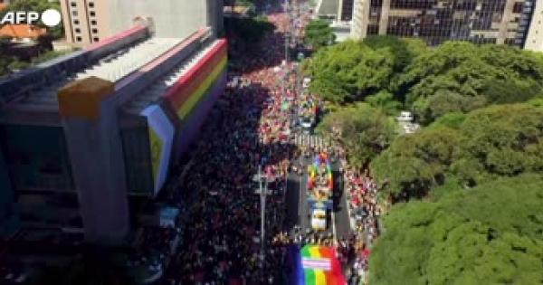 Il corteo arcobaleno ha sfilato sull'avenida Paulista, fra carri e musica e danze