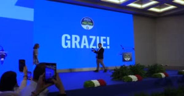 La premier e' intervenuta dal palco dopo la vittoria di FdI
