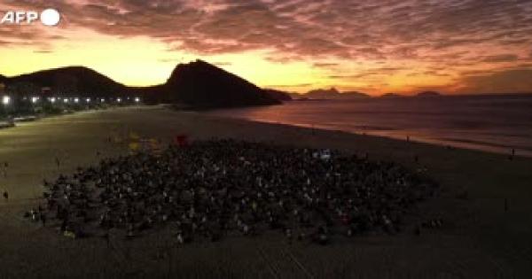 Suggestiva sessione di massa all'alba sulla celebre spiaggia di Rio de Janeiro