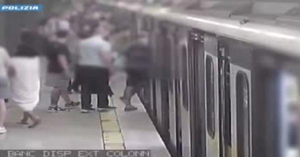La scena ripresa dalle telecamere della fermata Duomo, sulla linea M3