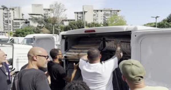 Catena umana dei cittadini per sistemarle all'interno dell'Universita'