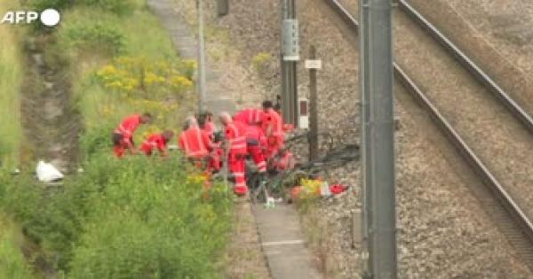 Gendarmerie e Sncf al lavoro in uno dei punti colpiti, a Croisilles (Pas-de-Calais)