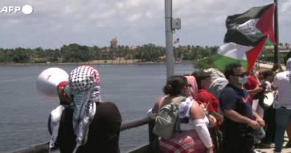 Sventolate bandiere palestinesi di fronte alla tenuta del tycoon