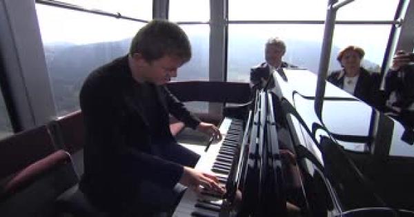 Il pianista Filippo Gorini suona sulla funivia tra Bolzano e il Renon