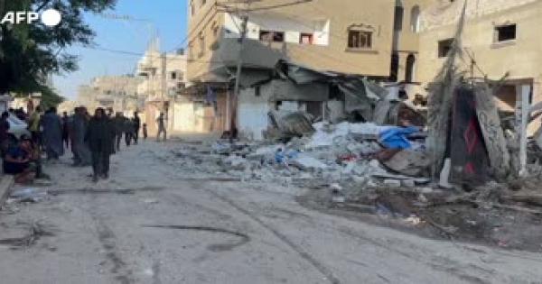 Gli effetti del raid compiuto ieri dall'Esercito nella citta' nel centro della Striscia
