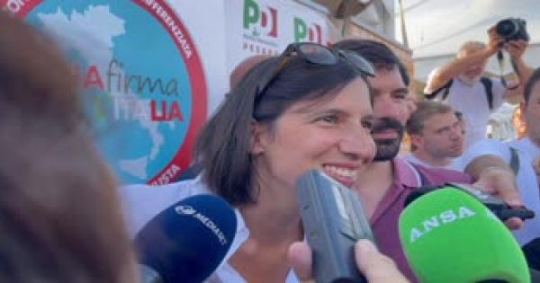 La leader del Pd a Pesaro. D'Alema: "Consigli alla segretaria? Per l'amor del cielo!"