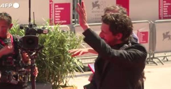 Con la fidanzata Georgina Chapman, i colleghi del cast e il regista Brady Corbet