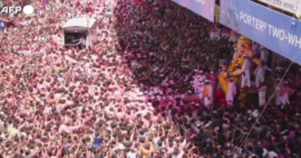 Migliaia di devoti danzanti li portano fino al Mar Arabico per l'immersione