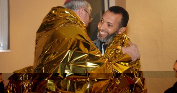 (ANSA) - TREVISO, 05 OTT - Un vescovo e un imam che si abbracciano dopo essersi posti reciprocamente sulle spalle un telo termico. È l'immagine forte della veglia di preghiera "Ascoltiamo il silenzio" che si è svolta ieri sera a Treviso, dedicata all'aiuto ai migranti. Il momento di preghiera viene proposto da 11 anni dalla Caritas tarvisina in ricordo di chi muore in mare e lungo le altre vie della migrazione, in occasione dell'anniversario del naufragio del 2013 a poche miglia da Lampedusa. Il vescovo Michele Tomasi ha ricordato che "oggi molti vorrebbero che il grido dei migranti smettesse, perché dà fastidio, perché mette in difficoltà i sistemi economici e gli equilibri internazionali. Ma noi vorremmo che questa voce, di tutti quelli che nel mondo si mettono in cammino, venisse sentita dai grandi e dai potenti, che potessero ascoltare quel grido e guardare quegli occhi. Preghiamo con insistenza il Signore, diamo voce noi a quel grido di aiuto, perché possiamo accogliere e godere della fraternità con tutti", ha concluso. Sallahdine Mourchid, imam dell'associazione culturale islamica Attawasol, di Montebelluna (Treviso), ha messo in luce "i valori di misericordia e compassione che ci uniscono tutti come esseri umani, indipendentemente dalla nostra fede ed etnia. La migrazione è parte dell'esperienza umana e Dio benedice gli sforzi di coloro che migrano in cerca di giustizia e sicurezza, e ascolta il grido di coloro che soffrono; nel Corano si invita alla misericordia e alla solidarietà verso ogni essere umano". Al termine, il vescovo e l'imam hanno consegnato a tutti i partecipanti un pezzettino di telo termico e un'immagine di Maria. (ANSA).
