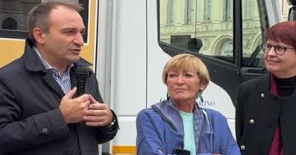 Il sindaco durante il taglio che inaugura il secondo bibliobus della citta'