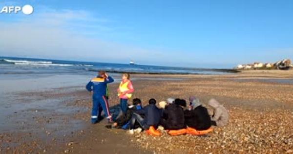 Accolti dai volontari di una ong e dalla Protezione civile ad Audresselles (Calais)