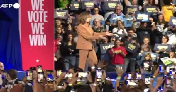 L'ex First Lady sul palco con Kamala Harris a Kalamazoo, in Michigan