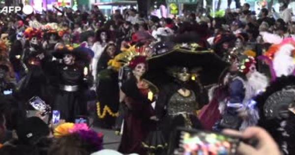 In centinaia in strada per la parata che precede il Dia de los Muertos