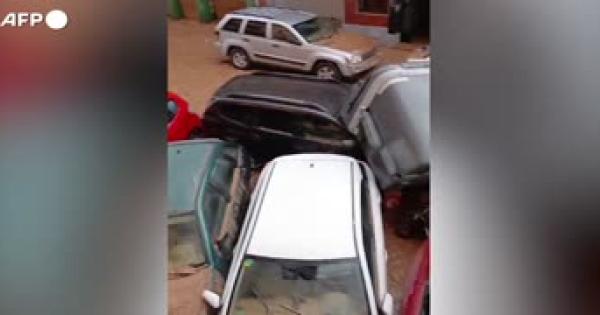 Le conseguenze dell'alluvione tra fango e auto accumulate nelle strade allagate del sud-est del paese