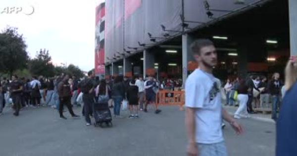Davanti allo stadio Mestalla si raccolgono acqua e beni di prima necessita'