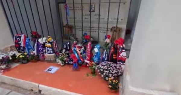 Fiori e sciarpe per il calciatore nel giorno in cui avrebbe compiuto 80 anni