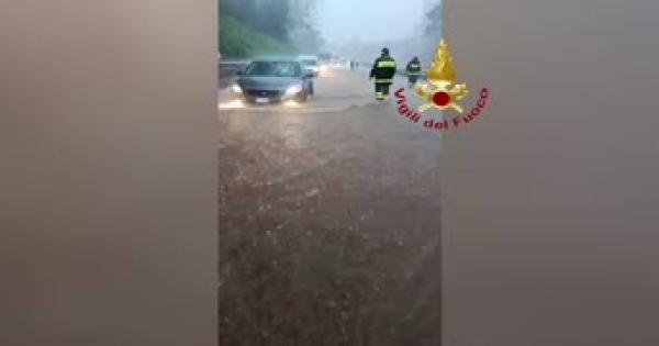Pompieri intervenuti con un mezzo anfibio in una casa allagata ad Altarello, frazione di Riposto