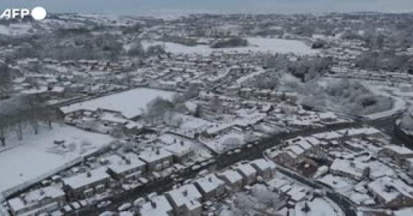 Il paese di Brighouse innevato visto dall'alto. Allerta meteo gialla nel nord