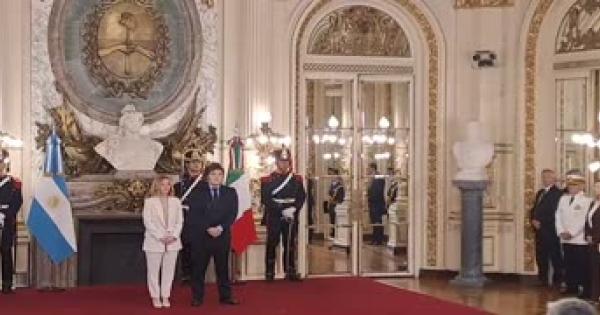 I sorrisi e gli abbracci con Karina, la sorella del presidente, prima della foto di rito alla Casa Rosada
