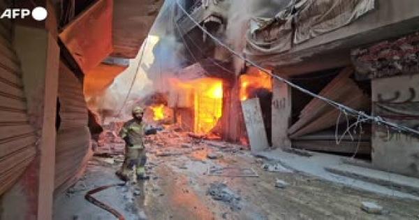 I vigili del fuoco al lavoro per spegnere gli incendi nell'area di Choueifat