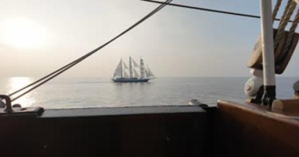 La nave scuola scortata dal veliero Tarangini della Marina Militare indiana