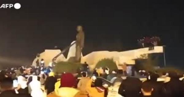 Un camioncino ne trascina poi la testa per le strade di Hama, tra scene di giubilo