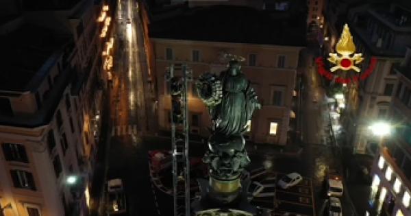 Il caporeparto piu' anziano depone corona di fiori in braccio alla statua a 27 m d'altezza