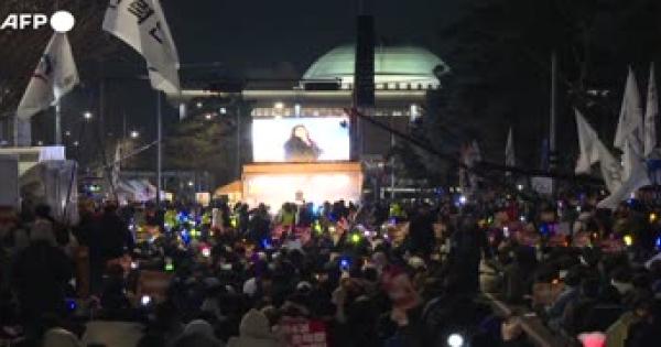 Folla a Seul, di fronte all'Assemblea nazionale. Ma sembra un evento-spettacolo