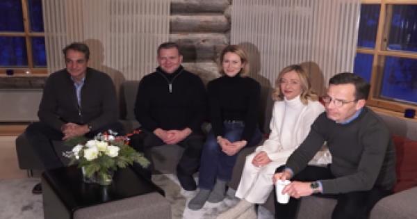 La premier posa per la foto con Mitsotakis, Orpo, Kallas e Kristersson