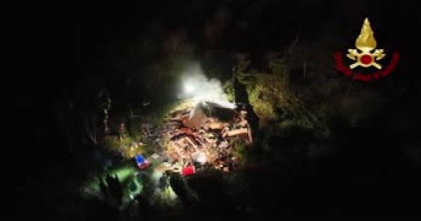 Nelle immagini la ricognizione dei droni e il lavoro a terra dei vigili del fuoco