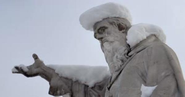 La statua di San Benedetto "indossa" un cappello di ghiaccio