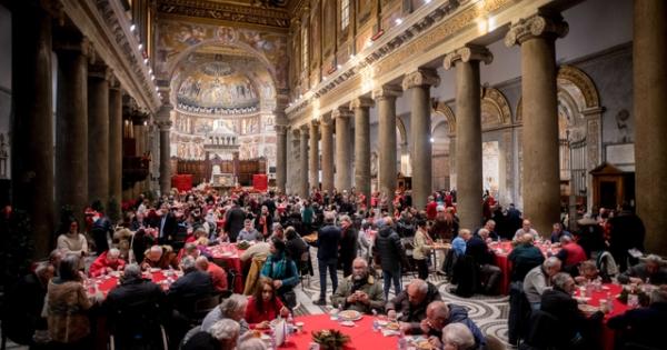 (ANSA) - ROMA, 25 DIC - Sono stati in tanti nella basilica di Santa Maria in Trastevere, dove è nata la tradizione del pranzo di Natale con i poveri. Non solo a Trastevere ma in tutta Italia si sono tenuti i pranzi di Natale della Comunità di Sant'Egidio con la partecipazione di 80mila tra volontari e invitati, e in tutti i continenti in 250mila. Un forte messaggio di pace e di solidarietà. Senza dimora, anziani, famiglie in difficoltà, rifugiati venuti con i corridoi umanitari si sono seduti a tavola con chi ogni giorno dell'anno li aiuta ed è loro amico. Per quasi due ore hanno parlato e fatto festa con il menù della tradizione: lasagne, polpettone, lenticchie e panettone. "Questa tavola vince la solitudine ma è anche una proposta alla nostra società perché diventi più fraterna e accogliente", è l'invito di Andrea Riccardi, che ha partecipato al pranzo. Perché, come ha commentato il presidente di Sant'Egidio, Marco Impagliazzo, "insieme alle porte della basilica, si sono aperte anche le porte di tanti cuori, di tutte quelle persone, tra cui molti giovani, che oggi si occupano di chi ha bisogno". Alla fine del pranzo, al momento dei saluti, il parroco di Santa Maria in Trastevere, don Marco Gnavi, ha presentato alcuni ospiti. Come Gemma, siriana, venuta con i corridoi umanitari: "In questo momento è importante sperare e pregare per la pace nel mondo". Antonino, siciliano, da tanti anni a Roma: "Ho vissuto per strada, sono stato aiutato a trovare una casa e ora sostengo chi è in difficoltà". E il piccolo Alì, venuto da Gaza insieme alla sua zia, che in perfetto italiano ha detto, convinto: "Mi piace questa tavola!". Il pranzo nella basilica ha visto la presenza anche del sindaco di Roma Roberto Gualtieri: "Per me è un grande onore stare qui. E' un momento bellissimo, con persone che hanno bisogno di sentire la città vicina, una città che non vuole lasciare indietro nessuno, dove tutti stanno meglio, non solo le persone che vengono aiutate, ma anche chi aiuta." . "Insieme - ha commentato alla fine don Gnavi - abbiamo vissuto la realtà di un popolo senza confini, che ritrova la speranza e costruisce un futuro di pace". Tutti i pranzi di Sant'Egidio sono realizzati grazie al sostegno gratuito dei volontari e al numero solidale 45586 (attivo fino al 29 dicembre). Numerose le iniziative in programma anche nei prossimi giorni, per tutto il periodo natalizio, con distribuzione di pasti e regali anche nelle carceri, come a Roma, il 26 dicembre, a Rebibbia e a Regina Coeli. (ANSA).