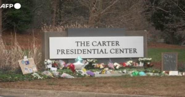 Fiori, la bandiera a stelle e strisce, cartoline e candele al Carter Presidential Center