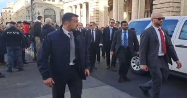 Le sue auto si fermano in via del Corso, poi a piedi al monumento