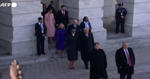 Il saluto al termine della cerimonia d'insediamento svoltasi a Capitol Hill
