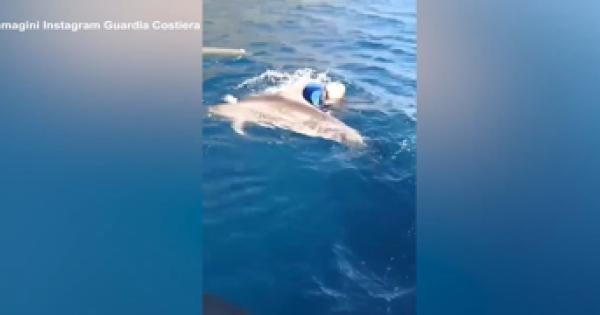 Il piccolo si e' ricongiunto con la madre e nuotato insieme vicino alla motovedetta