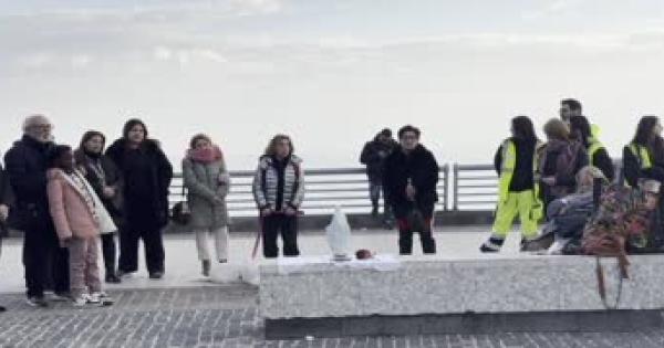 Sul lungomare una statuetta della Madonna, fiori e candele