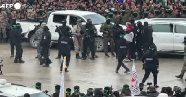 Tal Shoham e Avera Mengistu sul palco prima di essere consegnati alla Croce Rossa