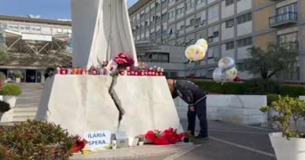 Tanti i fedeli nel piazzale del policlinico dove il pontefice e' ricoverato da dieci giorni